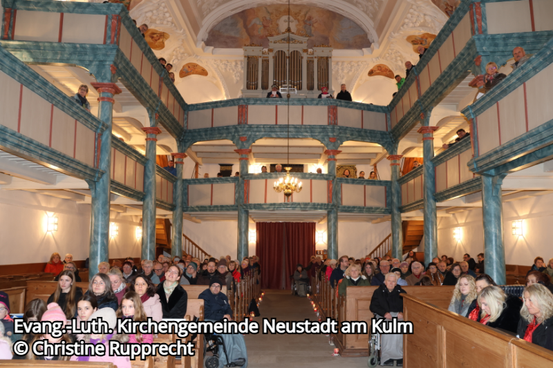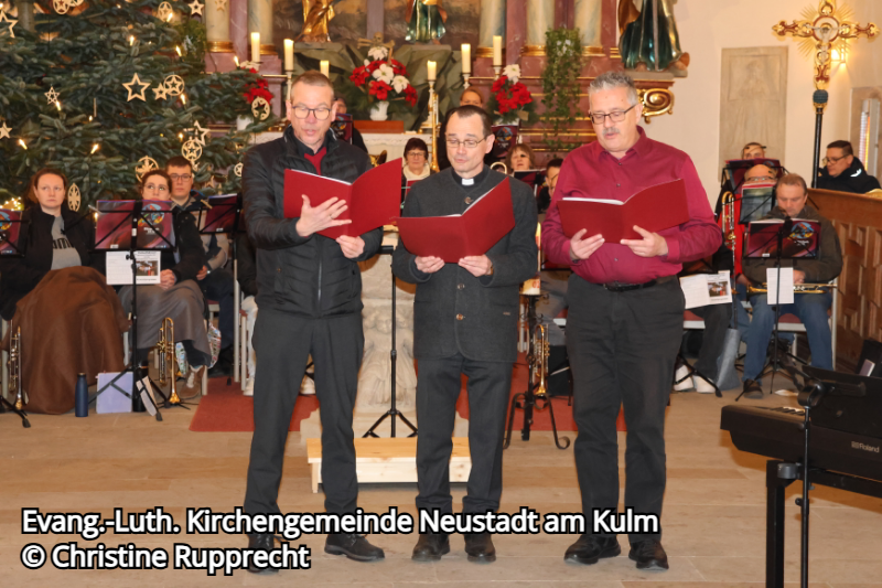 Mit jeweils drei Beiträgen überzeugten der Kirchenchor „Pro Deo“ der Kirchengemeinde Wirbenz, der kombinierte Posaunenchor aus Neustadt und Frankenberg, der Kinderchor, der Männergesangverein Neustadt am Kulm und Trabitz, die Flötengruppe aus Frankenberg, das Vocal X-tett und der neu gegründete Männerdreigesang mit Johannes Schinner, Holger Haller und Hartmut Klausfelder.